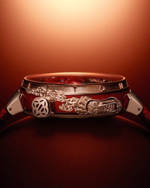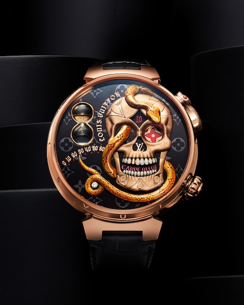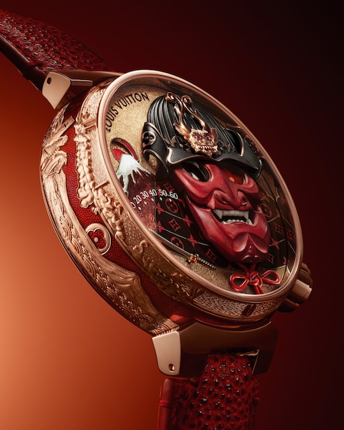 Continuando con el viaje de Louis Vuitton a la Alta Relojería, el excepcional reloj Tambour Bushido Automata rinde homenaje al arte, la cultura y la historia japonesas, haciendo referencia al Bushido, el código de conducta de los samuráis. Haciendo gala del excepcional savoir-faire de los Métiers d'Art de la Maison, la esfera cobra vida con sólo pulsar un botón, revelando las horas en el interior del casco, mientras que la espada katana indica los minutos.