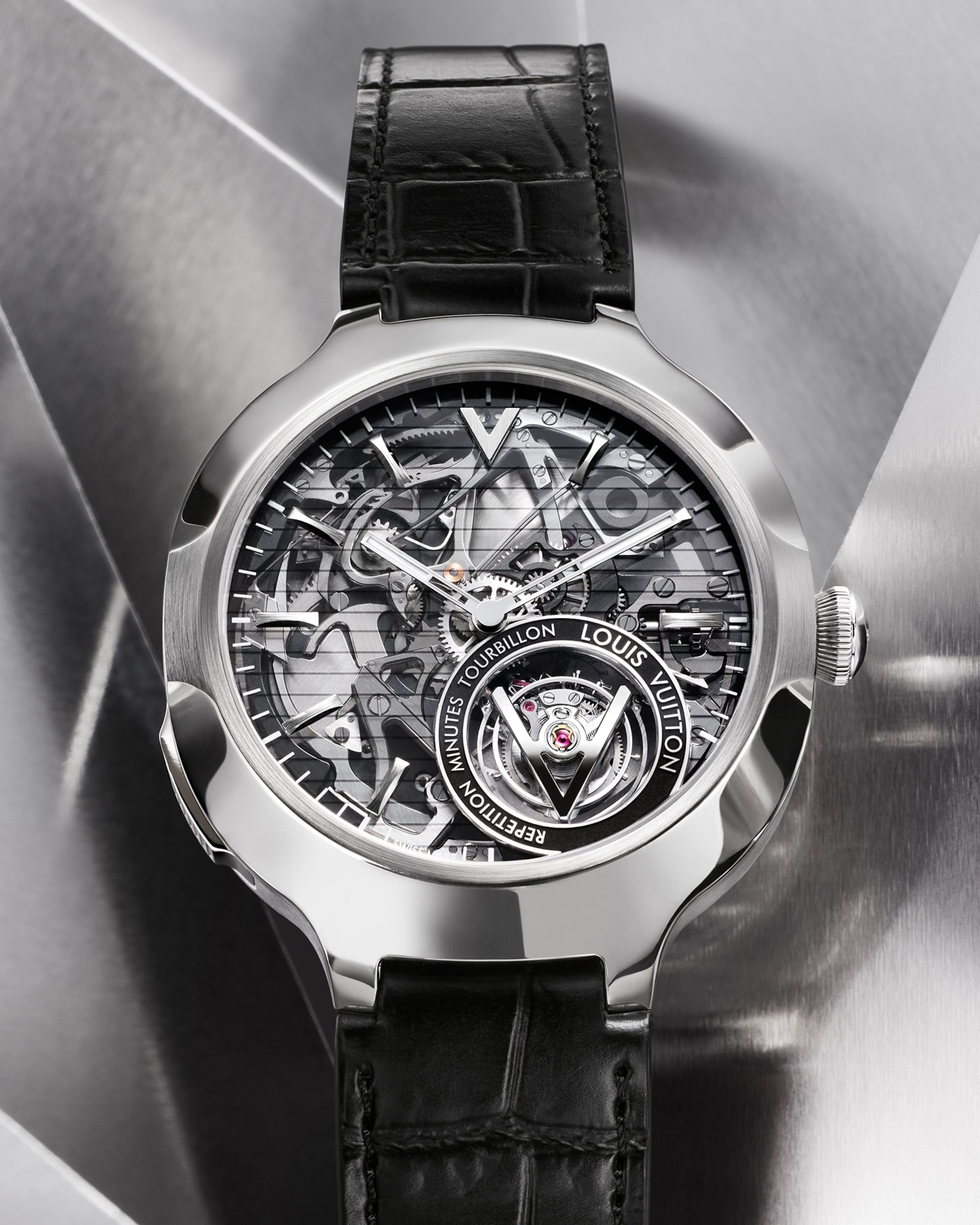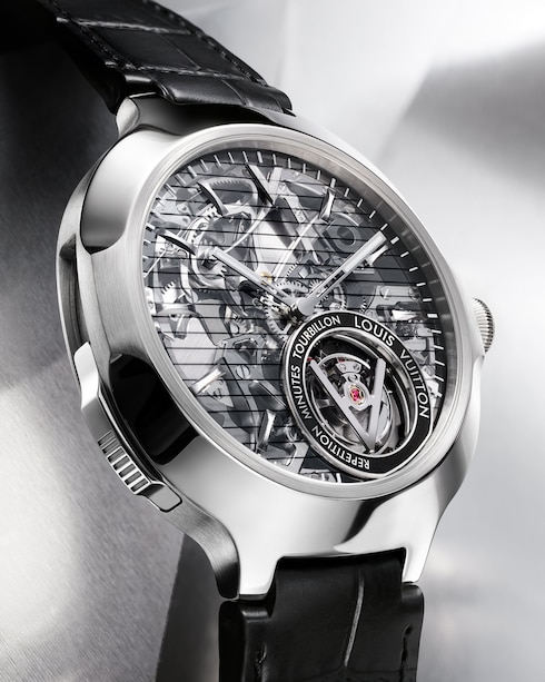 Emulando la intensidad sonora de las campanas de una catedral, y con su compleja esfera, firma de La Fabrique du Temps Louis Vuitton, el Reloj con Repetición de Minutos reinventa cada momento a través del sonido y la imagen.
