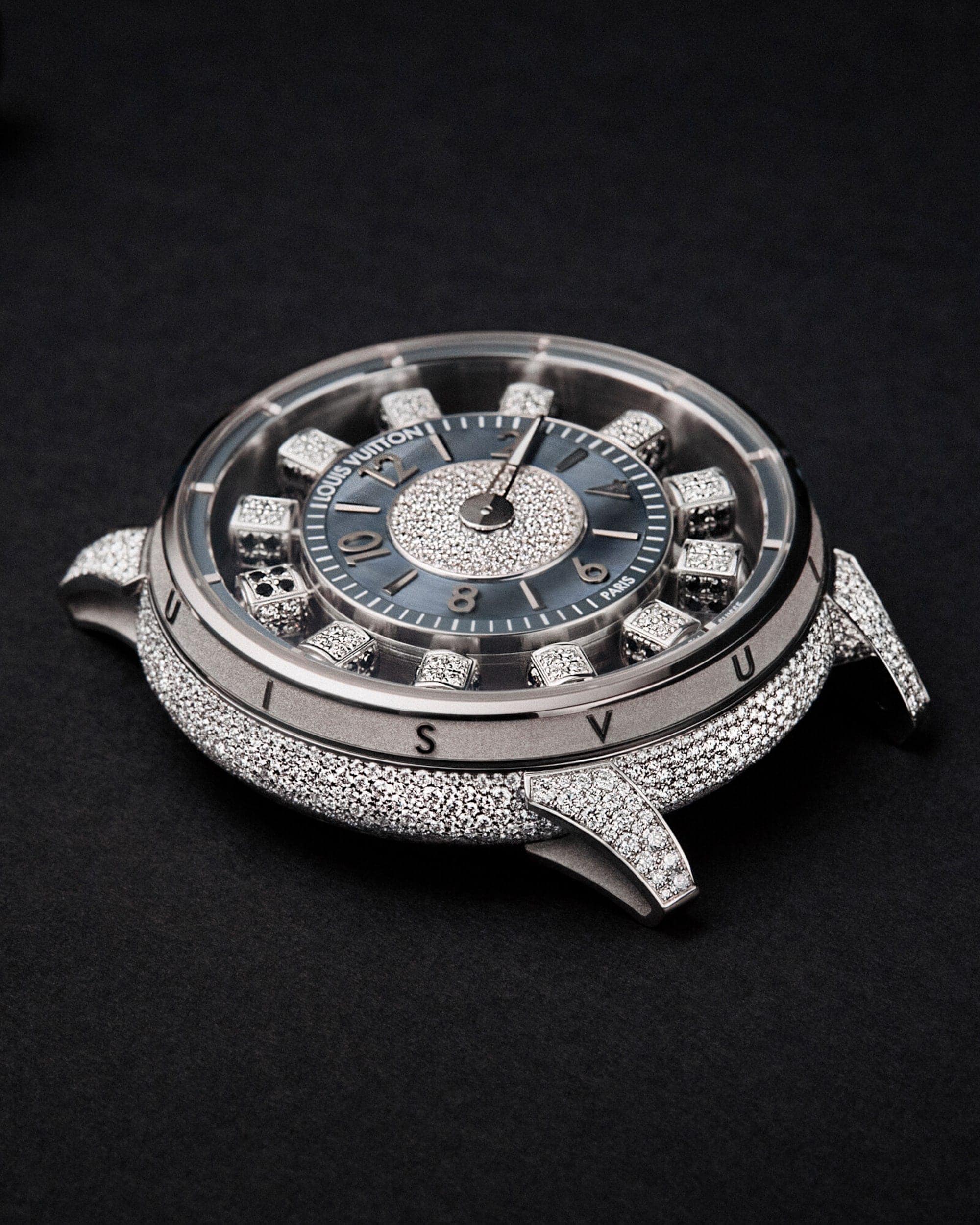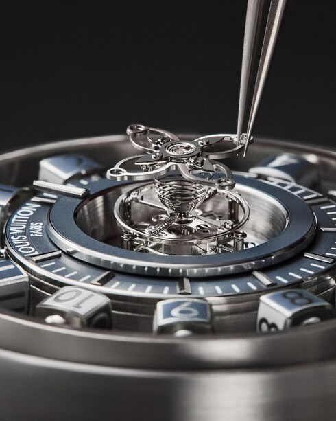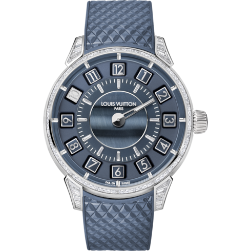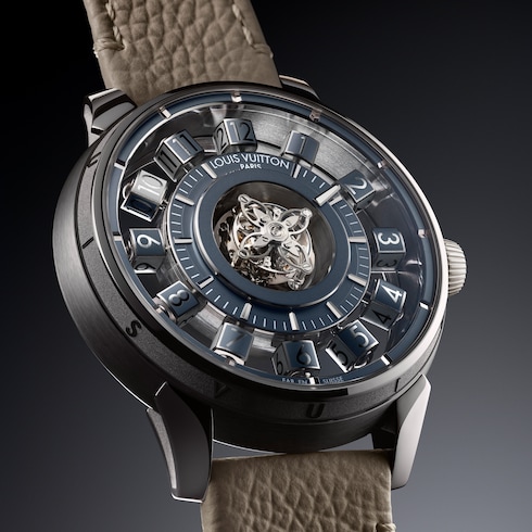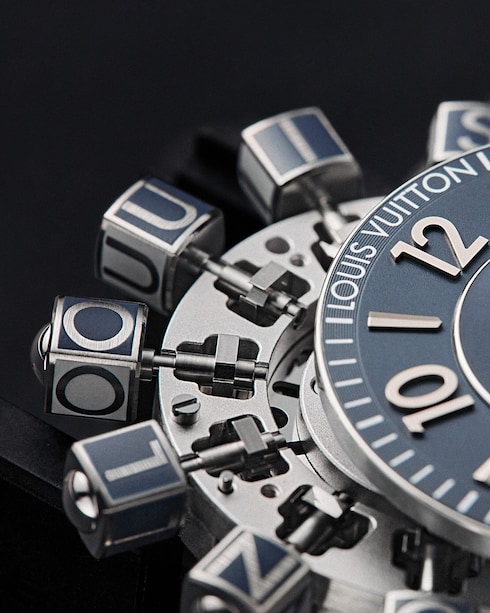 En una reinterpretación del emblemático Spin Time de Louis Vuitton, presentado en 2009, la colección Tambour Taiko Spin Time presenta seis relojes de edición limitada con movimientos exclusivos de la Maison. La colección reimagina la icónica pantalla patentada de cubos saltantes tridimensionales, inspirada en las pantallas con solapas que muestran los horarios en los aeropuertos. Cada 60 minutos, dos cubos giran: uno vuelve a su posición de reposo y el otro gira para revelar su cara oculta y decorada.