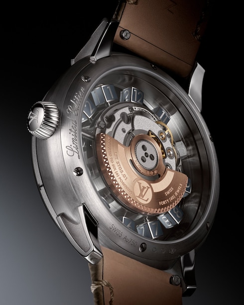 Combinando las tradiciones atemporales de la Alta Relojería con la innovación moderna, los tres movimientos Spin Time desvelados presentan puentes arenados, platinas de grano circular, rubíes incoloros y una masa oscilante de oro rosa de 18 quilates. Dotados de una reserva de marcha de 45 horas, los movimientos ejemplifican la incomparable precisión de La Fabrique du Temps Louis Vuitton y su compromiso con la artesanía de vanguardia.