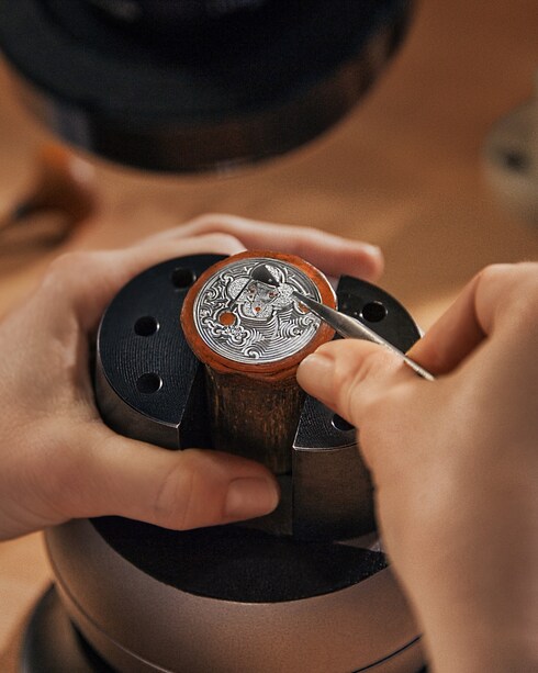 En manos expertas, el grabado se convierte en una forma de expresión artística, donde el trazado de finas líneas, proporciones y formas con matices de sombreado dan vida y profundidad a la decoración de las esferas, cajas y componentes del movimiento. Para tallar el metal y alcanzar el minucioso nivel de detalle que requiere esta técnica tradicional, el maestro grabador utiliza numerosas herramientas, como el cincel. Los intrincados motivos grabados se convierten en obras de arte atemporales, testimonio de la sutil unión entre tradición artesanal y estética creativa en el mundo de la relojería.