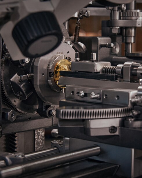 Técnica tradicional de grabado decorativo sobre metal, el guilloché revela la perfecta armonía entre la mano y la máquina. Con la máxima destreza, el maestro guilloché guía la máquina para producir motivos lineales o geométricos de una finura y consistencia incomparables, creando sutiles juegos de luz. Estos acentos gráficos distintivos son el sello distintivo de las refinadas creaciones relojeras de la fábrica.