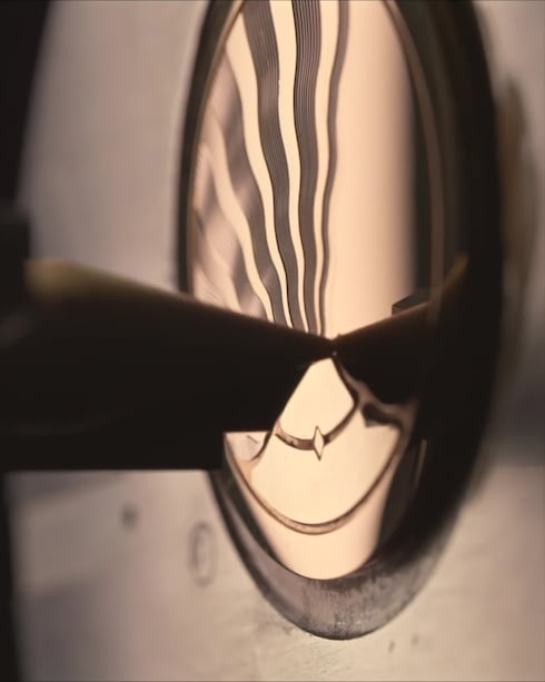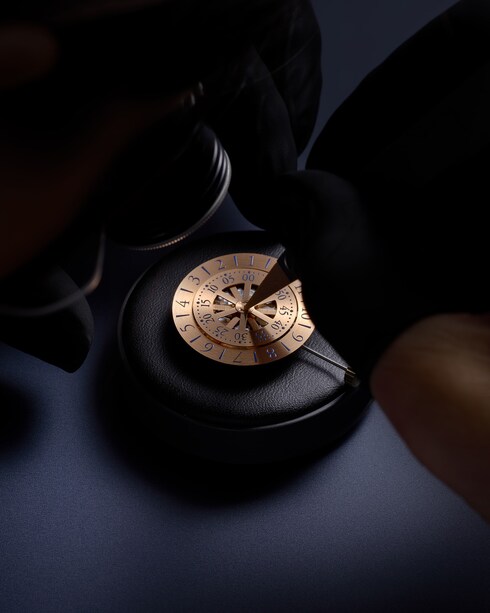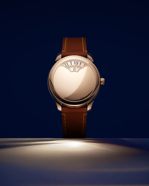 Concebido y fabricado en la Fabrique du Temps Louis Vuitton, el Tambour Convergence está equipado con un nuevo calibre automático de la Maison, con horas y minutos de arrastre para una visualización poética del tiempo.