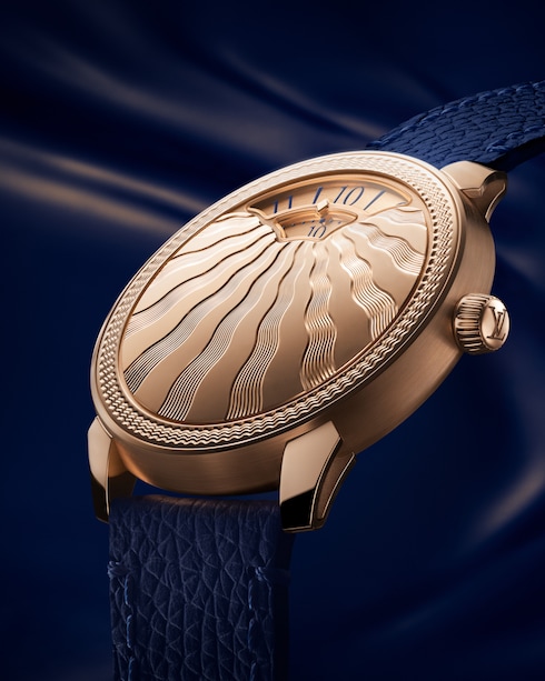 Encarnando una sofisticada elegancia, la colección presenta dos diseños excepcionales: un refinado modelo de oro rosa pulido a espejo y un lustroso reloj de platino engastado con 795 diamantes.