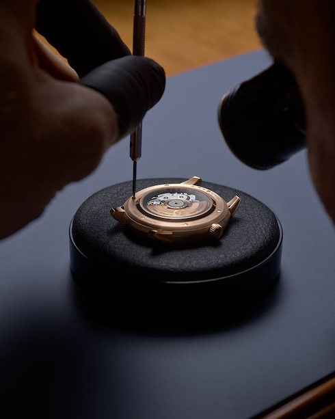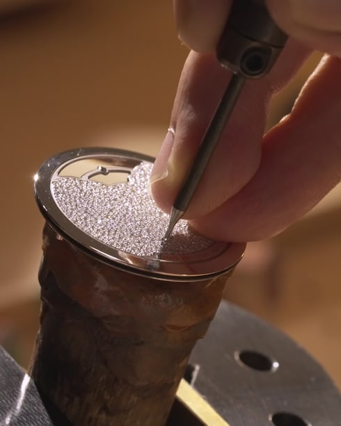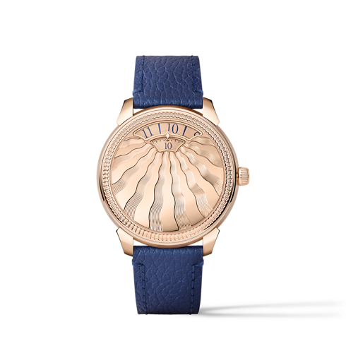 Invitando a lo extraordinario a lo cotidiano, el reloj Tambour Convergence en oro rosa o platino unifica a la perfección el movimiento y la caja en un diálogo armonioso.