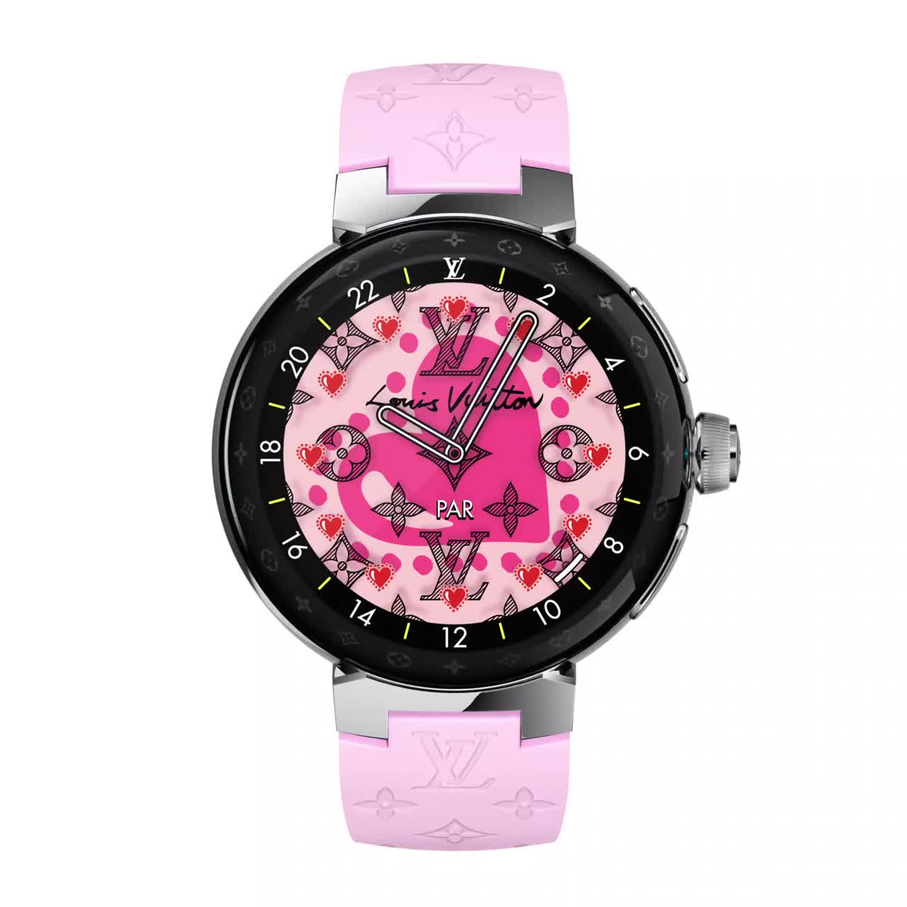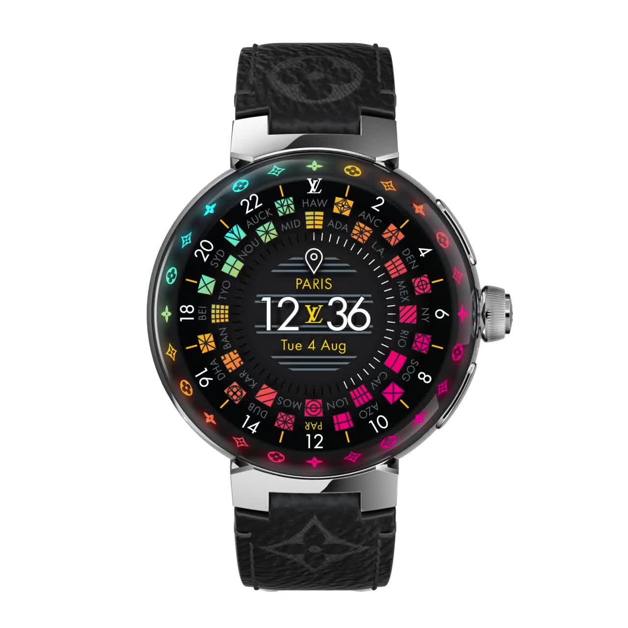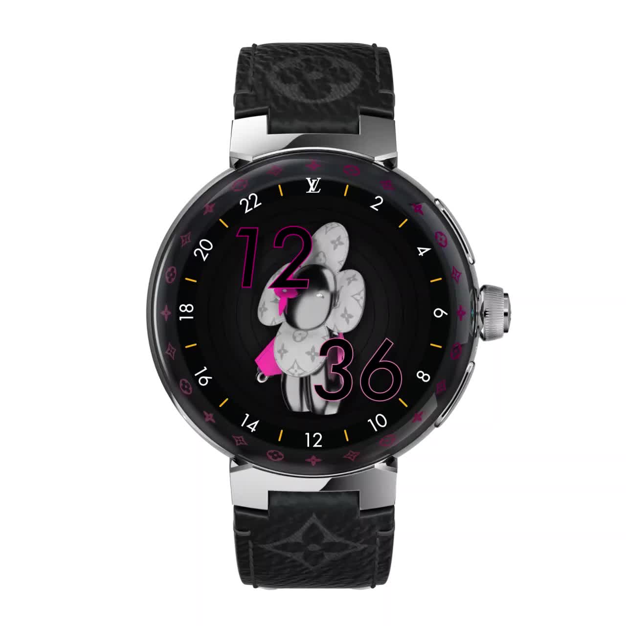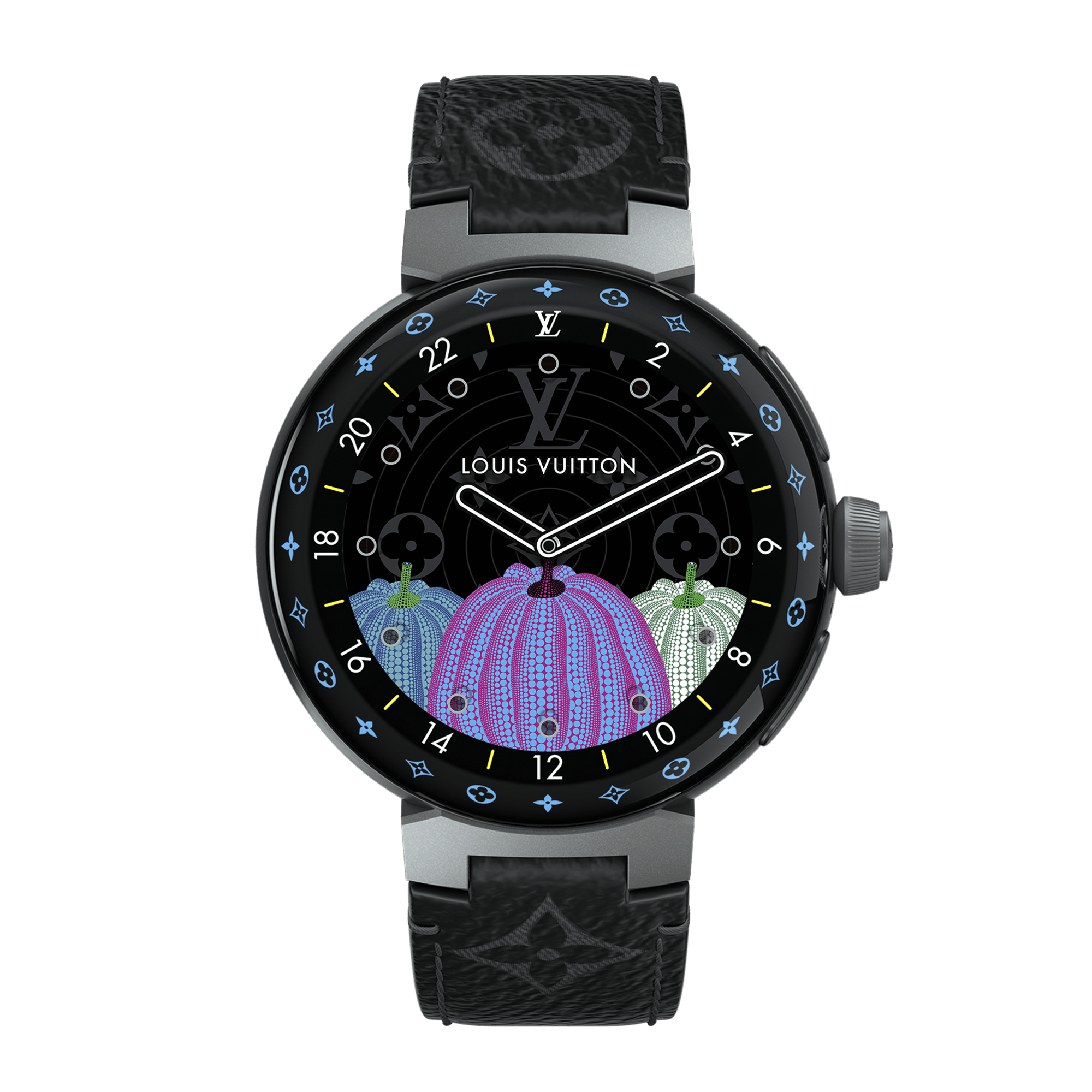 Sobre el borde, 24 luces LED iluminan el emblemático anillo Louis Vuitton Monogram, como un caleidoscopio de colores que crea una fascinante animación en la oscuridad cada vez que se enciende el reloj.