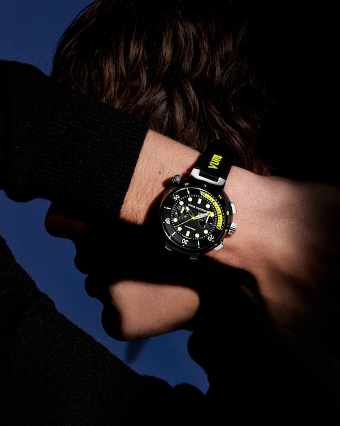 Reuniendo las credenciales de un reloj de buceo tradicional, la colección Tambour Street Diver encarna el espíritu audaz de Louis Vuitton con fuertes códigos de color. Impregnado de una elegancia desenfadada, el modelo original fue galardonado con el premio Diver's Watch en el Grand Prix d'Horlogerie de Genève.