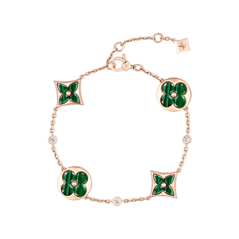 Combinando piedras únicas y oro, la colección Color Blossom de Louis Vuitton juega con los delicados volúmenes de la icónica flor Monogram. Los pendientes, anillos, pulseras y collares se pueden apilar sin fin, creando combinaciones atrevidas y llenas de color.