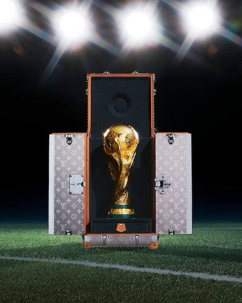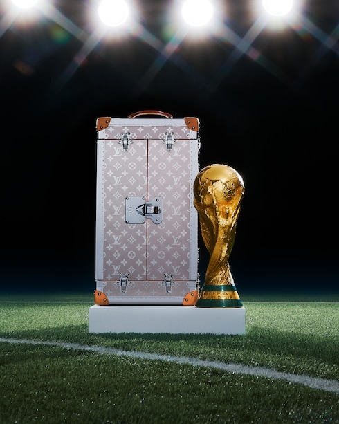 Como parte de su asociación con uno de los mayores acontecimientos deportivos del mundo, Louis Vuitton ha diseñado los baúles para albergar los trofeos de las Copas Mundiales de la FIFA™ 2010, 2014, 2018 y 2022. El baúl para trofeos ha sido cuidadosamente elaborado para proteger los codiciados 6,175 kilogramos de oro de 18 quilates y malaquita del trofeo. Un medio elegante e inteligente de transportar y exhibir el mayor premio del fútbol, este elegante maletín continúa la asociación de 160 años de Louis Vuitton con las leyendas: desde la realeza, los escritores, los exploradores hasta el trofeo más reconocido del mundo."