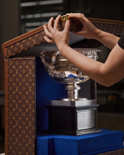 Louis Vuitton, fiel a su compromiso histórico con el tenis, se une al Open de Australia por segundo año consecutivo como socio oficial del evento en la creación de dos baúles Monogram a medida para proteger la Daphne Akhurst Memorial Cup femenina y la Norman Brookes Challenge Cup masculina. Las dos creaciones a medida, que se exhibirán durante los torneos finales y en las prestigiosas ceremonias de entrega de premios. Forradas en microfibra azul a juego con los códigos de color de la competición, mientras que en la parte inferior de la tapa figura el logotipo en blanco AO.