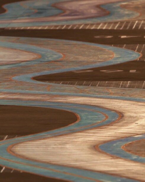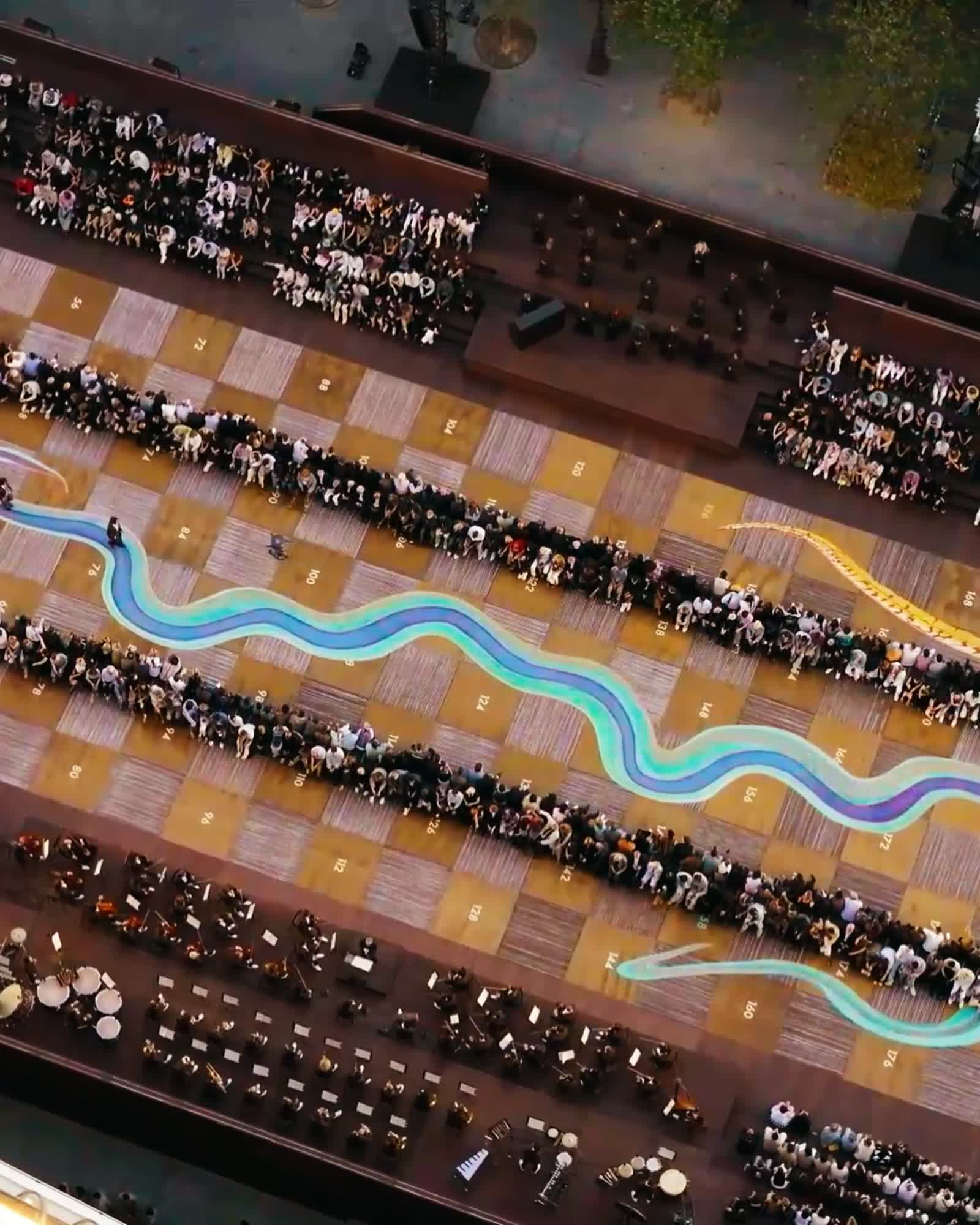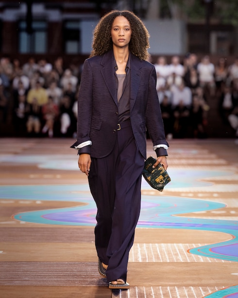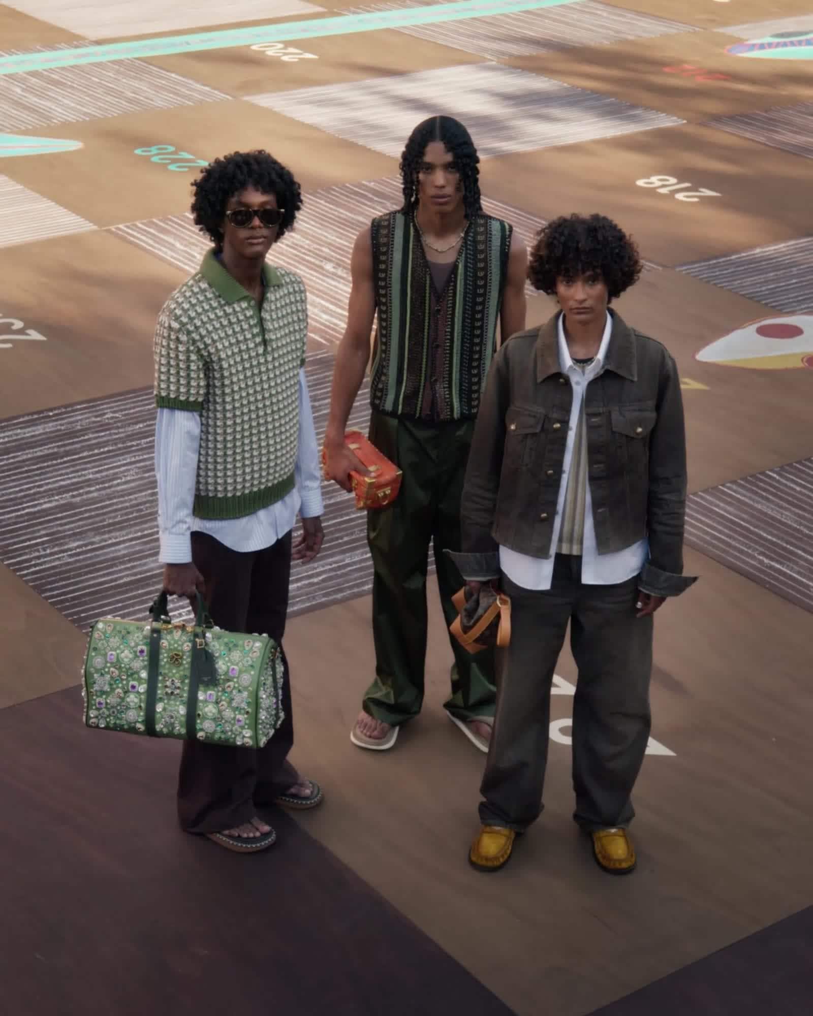 En una colaboración escenográfica con Studio Mumbai, el juego tradicional de Snakes and Ladders se transforma en una experiencia a escala real, reinterpretando el icónico motivo Damier mediante una fusión cultural que transforma a participantes y espectadores en jugadores dentro de un escenario metafórico lleno de posibilidades.