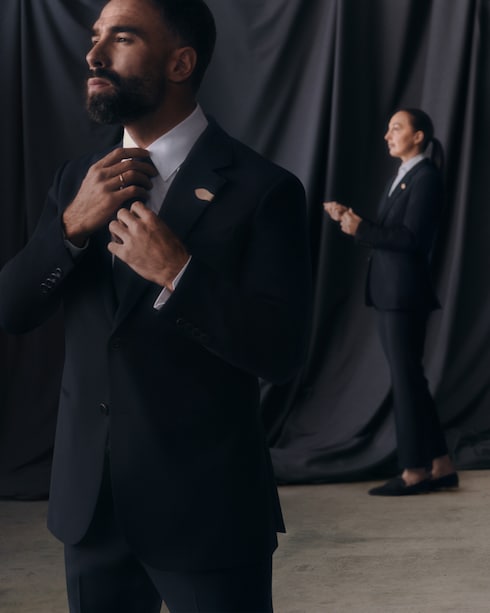 Con el emblemático estadio Santiago Bernabéu de Madrid como escenario, la campaña celebra el savoir-faire de la Maison a través de sastrería y detalles personalizados que trascienden más allá del deporte.