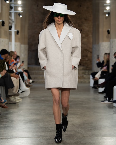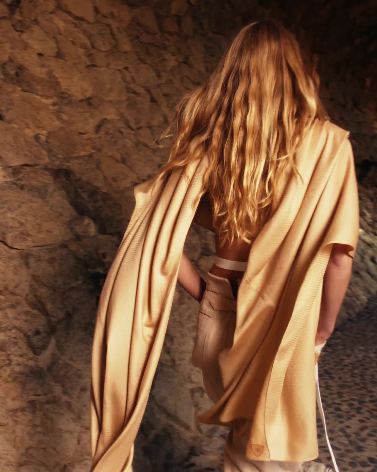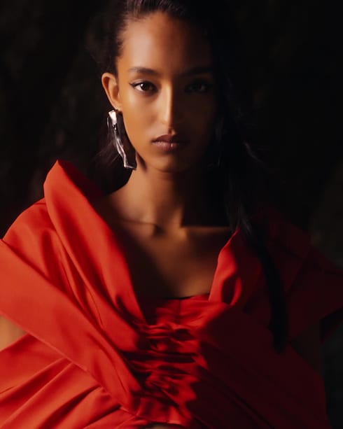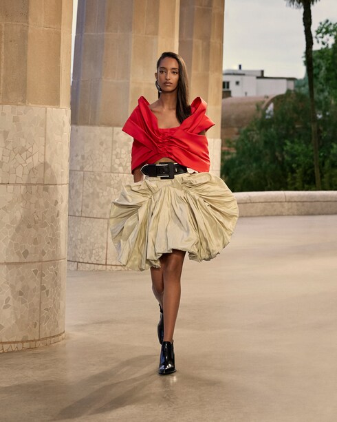 Con volúmenes arquitectónicos y drapeados fluidos, la colección cautiva por su exploración de los contrastes. Las creaciones de prêt-à-porter, los bolsos y los accesorios, con toques españoles, se adornan con bordados, flecos y volantes, creando nuevas expresiones de inspiración viajera.