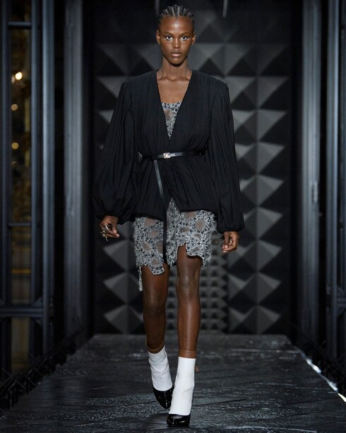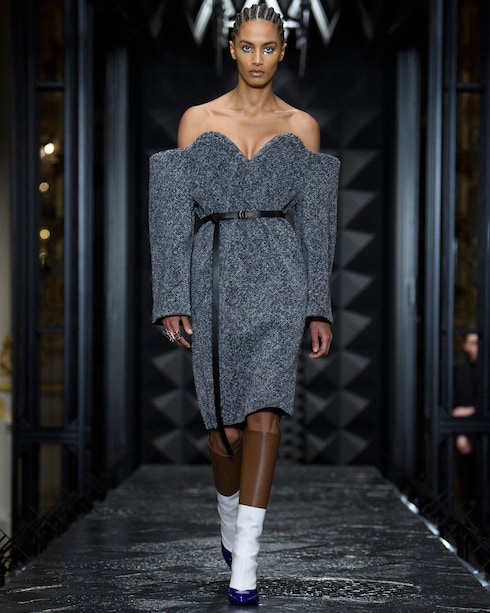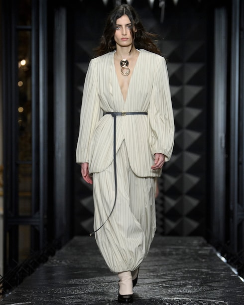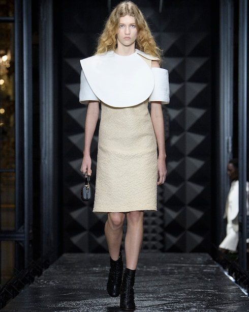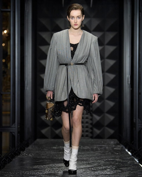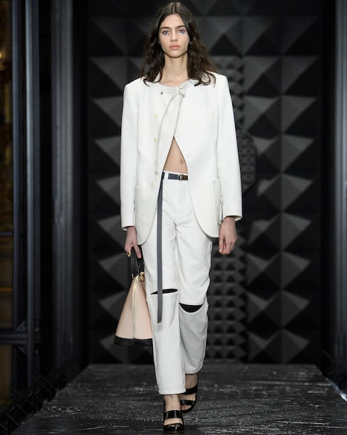 Explorando los códigos sartoriales del estilo francés, la Colección Otoño-Invierno 2023 da vida a la enigmática idea del chic parisino. Haciendo hincapié en el arte de la ilusión, las botas aparecen como zapatosabombadas y los bordados intrincados como tejidos, difuminando la línea de la percepción y la realidad, mientras que los bolsos y accesorios emblemáticos adoptan sutilmente el tricolor de la bandera francesa. Tomando como base movimiento y flexibilidad, Nicolas Ghesquière introduce una nueva formalidad, emblema de una firma francesa reimaginada.
