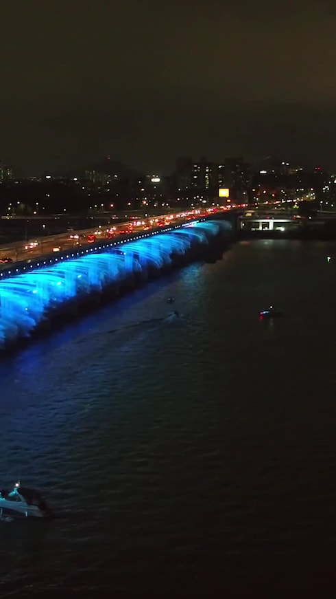 Hwang Dong-Hyuk, director de El Juego del Calamar, diseñó un decorado inmersivo en el emblemático puente Jamsugyo de Seúl, cuyas proyecciones de luz reflejan la increíble energía de una metrópolis en la que pasado, presente y futuro coexisten en armonía.