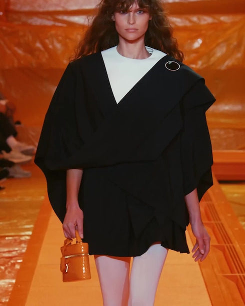 Con rayas gráficas y motivos sofisticados, las llamativas prendas fusionan la quintaesencia de la moda parisina con los códigos del estilo vintage. Nicolas Ghesquière juega con los volúmenes en capas para crear siluetas vaporosas y conjuntos entallados, cada uno de ellos representando una faceta diferente de la feminidad, realzada con adornos en forma de cinturón o accesorios de pedrería que aportan un toque matizado y atrévido.