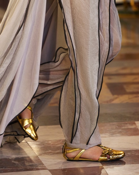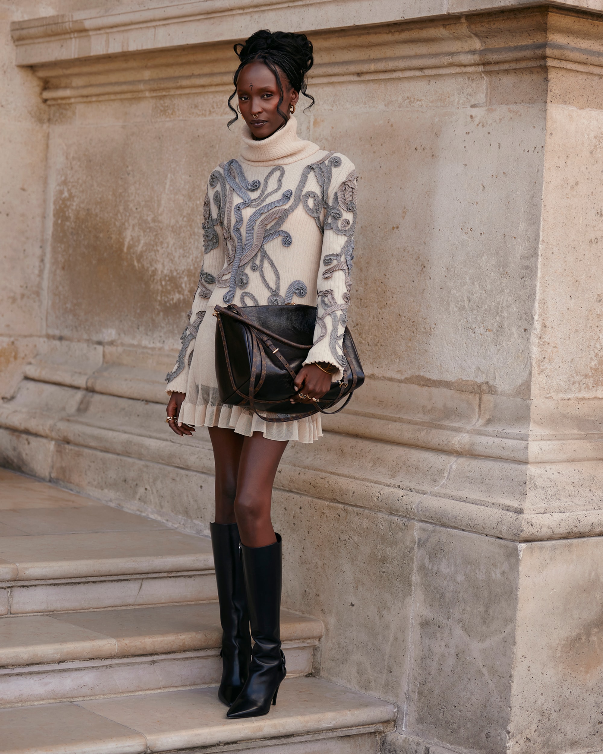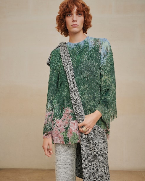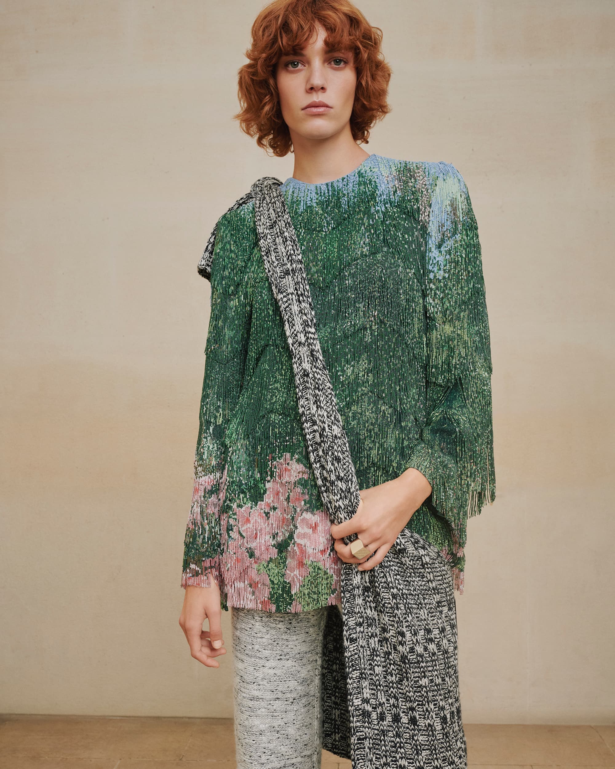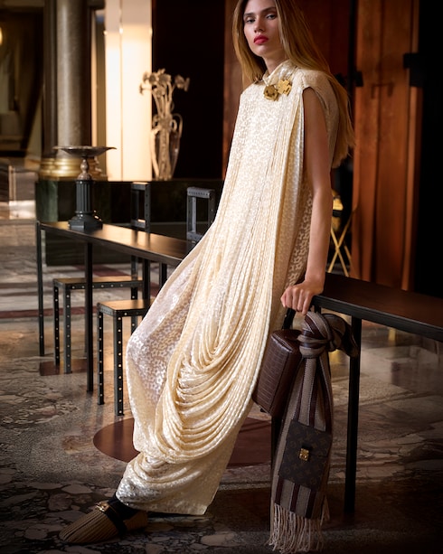 Con elegantes diseños y telas delicadas, la colección refleja comodidad y feminidad. Bordados finos y estampados jacquard realzan las prendas versátiles, bolsos reimaginados y una selección de zapatos y accesorios que van más allá de los estilos característicos de la Maison.
