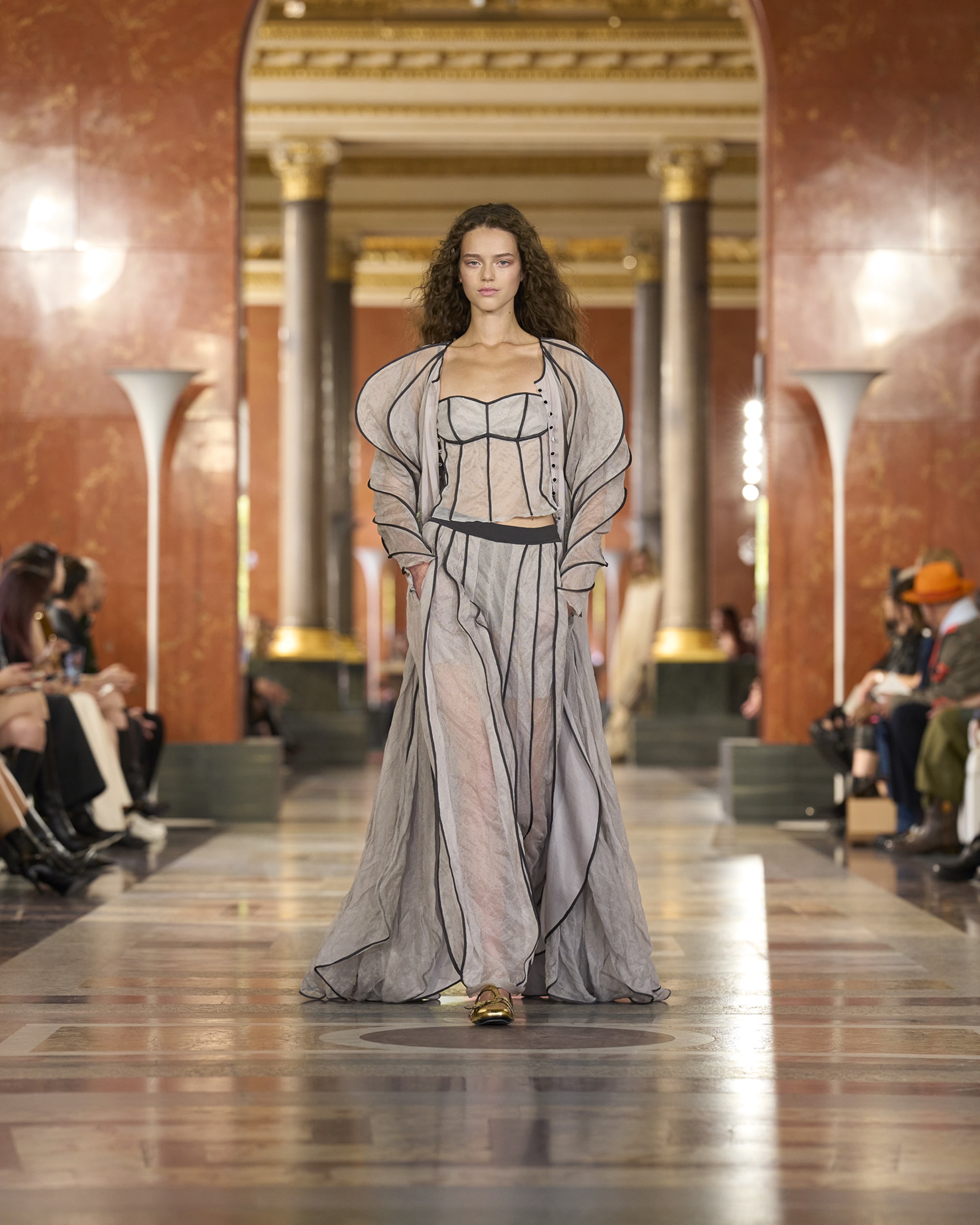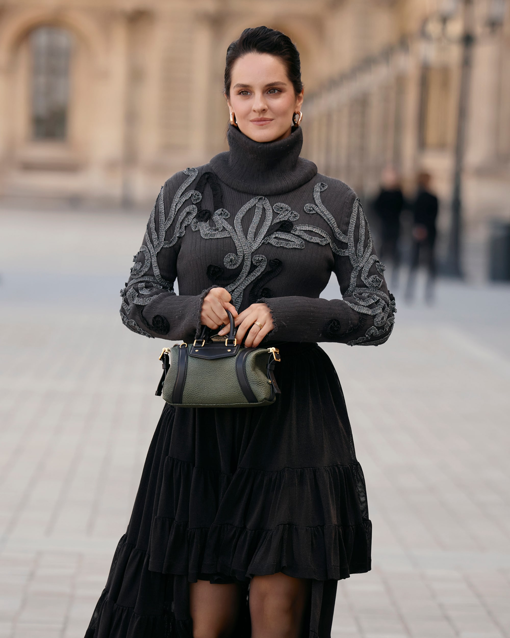 Celebrando el arte de vivir, Nicolas Ghesquière reimagina los códigos lenceros en siluetas elegantes de contrastes audaces, inspirándose en el galmour atemporal del Hollywood de los años 40.