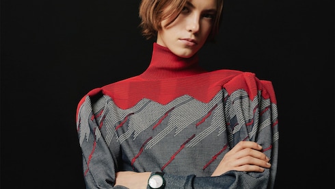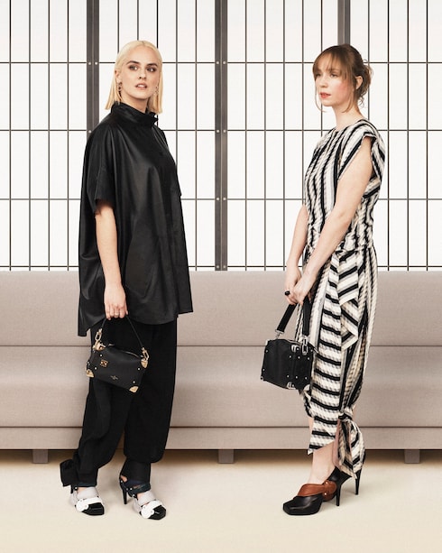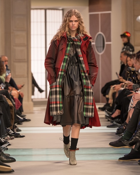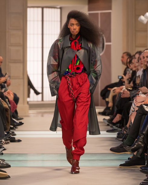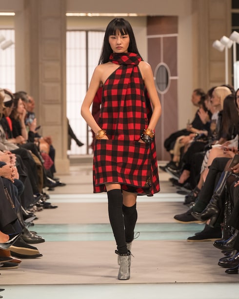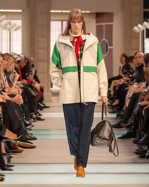 En un desfile de audaz eclecticismo, las prendas de abrigo técnicas y los vestidos con volantes se acompañan de bolsos, zapatos y accesorios emblemáticos de proporciones sorprendentes. Impregnada de vibrantes estallidos de color y estampados gráficos, la colección cuenta con la colaboración del grupo de música electrónica Kraftwerk.