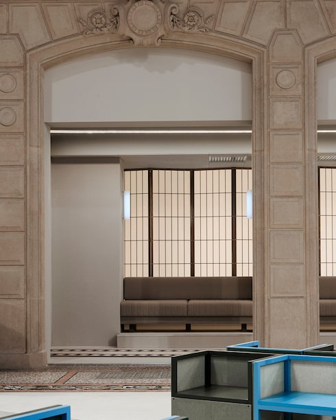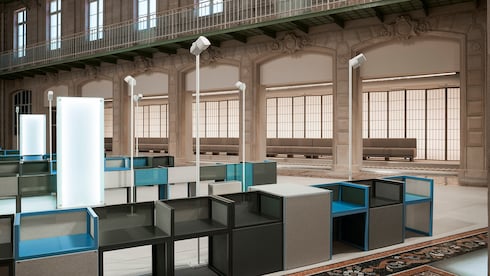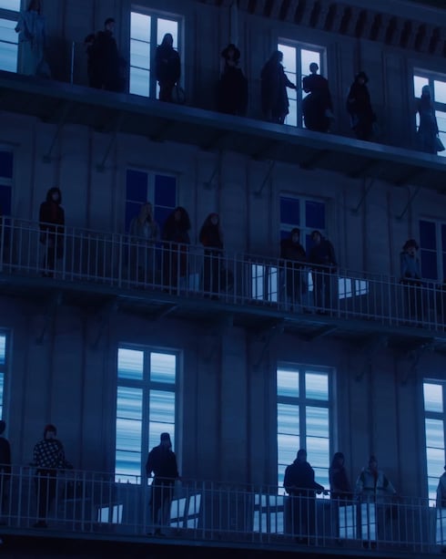 En una oda al espíritu viajero de Louis Vuitton, el edificio Étoile du Nord del siglo XIX cobra vida con la escenografía de Es Devlin, que captura el bullicioso ambiente de una estación de tren parisina en el gran atrio.