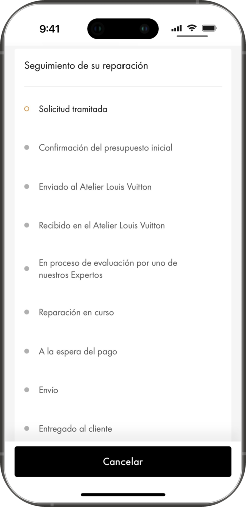 - ¿Cómo funcionan las reparaciones en línea?En primer lugar, uno de nuestros Expertos de cuidado le asesorará y le enviará una estimación de la reparación. Si decide continuar con ello, se le enviará una etiqueta de envío para que pueda enviar su artículo al Atelier Louis Vuitton.