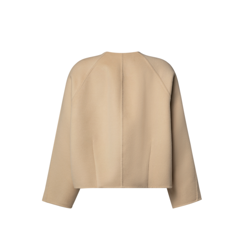 Este discreto abrigo de doble cara, confeccionado en suave mezcla de lana y seda, presenta un refinado diseño de líneas depuradas y corte recto. La parte delantera de estilo fluido y asimétrico luce un elegante drapeado, que deja entrever el motivo Monogram que adorna el interior. La prenda se completa con un exquisito cierre de botón.