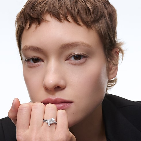 El anillo doble LV Diamonds es una muestra del excepcional savoir-faire en joyería de la Maison. Elaborado en oro blanco de 18 quilates, presenta un motivo LV Monogram Star en el centro engastado con un pavé de diamantes, que pone de relieve la piedra central de talla brillante redonda, cuyo engaste está inspirado en las flores estilizadas del emblemático patrón Monogram de Louis Vuitton y hacen un guiño distintivo. Los diamantes de talla brillante de la banda aportan un toque brillante adicional. Versátil y refinada, esta joya es el regalo perfecto para conmemorar momentos inolvidables y atesorar para siempre.