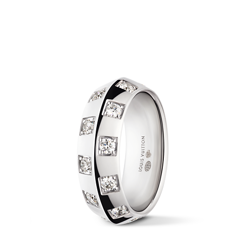 Anillo grande Le Damier de Louis Vuitton de oro blanco y diamantes