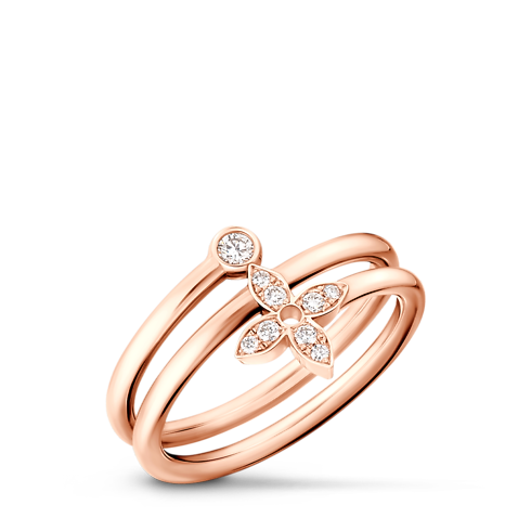 El anillo Idylle Blossom Multi combina un motivo icónico de Louis Vuitton y un original diseño en espiral. El modelo, elaborado en oro rosa y realzado con nueve radiantes diamantes, luce una flor Monogram en forma de estrella y un fino círculo, un símbolo del infinito y del movimiento perpetuo. Esta moderna joya de estilo femenino añade un delicado toque de elegancia a cualquier look de diario o de noche.