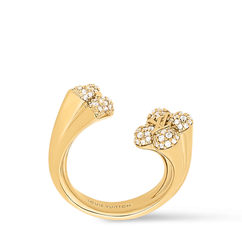 El vistoso y moderno anillo LV Flower Comet combina un estilo creativo con una excepcional maestría artesanal. Elaborado con gran precisión geométrica, su diseño abierto de color dorado contrasta con las delicadas curvas de las flores Monogram de cada extremo, adornadas con un reluciente pavé de diamantes. Un logotipo LV Initials brinda un toque de la Maison adicional a este refinado y llamativo accesorio.