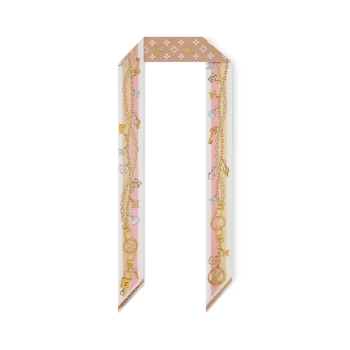 La elegante bandana K Charms capta el espíritu de Louis Vuitton en un diseño encantador y ultrafemenino. El patrón, estampado en seda pura, presenta una cadena con varios colgantes simbólicos que evocan motivos Monogram y la tradición viajera de la Maison. Ideal para lucir a diario, este accesorio añade un sutil toque refinado a cualquier conjunto.
