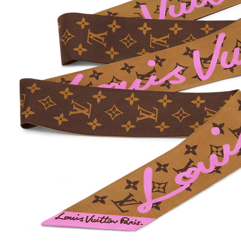 Confeccionada en exquisita seda, esta bandana LV Script BB ofrece una forma original y moderna de lucir el patrón distintivo de la Maison. Presenta un llamativo estampado del emblemático motivo Monogram, realzado con logotipos Louis Vuitton Paris manuscritos. Este accesorio elegante y versátil aporta un toque refinado y contemporáneo a cualquier conjunto.