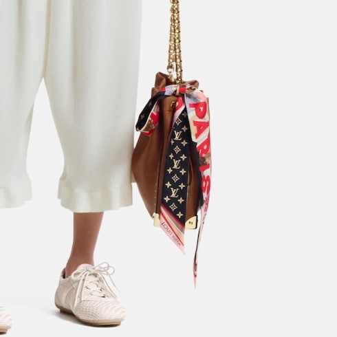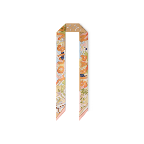 La bandana LV Wonderland BB, confeccionada íntegramente en seda, rinde un colorido homenaje a la creatividad y la artesanía. Su llamativo motivo representa un paisaje futurista y onírico, realzado con flores Monogram y emblemáticos baúles de Louis Vuitton. Unas letras de gran tamaño con efecto tridimensional componen el nombre de la Maison y aportan una original nota distintiva a este refinado accesorio contemporáneo.