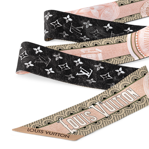 Esta bandana Malles Merveilleuses BB, confeccionada en pura seda, rinde homenaje a la historia y los detalles distintivos de Louis Vuitton. Su artístico diseño, inspirado en un póster publicitario del siglo XIX, combina baúles vintage con flores Monogram en el anverso y el clásico motivo Monogram en el reverso. Un accesorio perfecto para añadir un sutil toque de elegancia y color a cualquier look invernal.