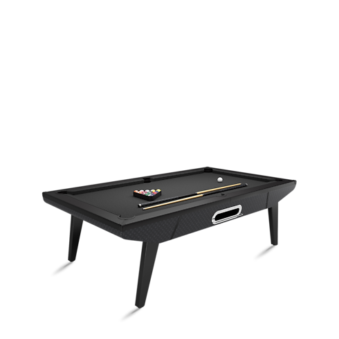 La mesa de billar Monogram MM, ideal para los aficionados a este juego, aúna estética moderna y artesanía tradicional. Esta elegante pieza de la mejor calidad presenta una estructura de madera forrada en la icónica lona Monogram de la Maison, así como una sólida base de pizarra que garantiza una superficie de juego totalmente plana. Se completa con esquinas pespunteadas tipo maleta, que evocan los orígenes de Louis Vuitton como fabricante de baúles, y tachuelas grabadas en las trabillas para los tacos.