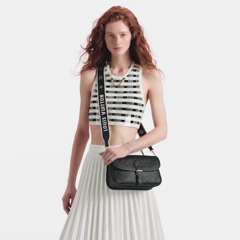 El bolso satchel Diane está confeccionado en la emblemática piel Monogram Empreinte de la Maison, caracterizada por un motivo en relieve. Puede llevarse en la mano o al hombro gracias al asa corta y extraíble en piel, o lucirse cruzado mediante una bandolera ancha, también extraíble, que presenta un distintivo Louis Vuitton en Jacquard. Este versátil accesorio combina a la perfección con looks elegantes y deportivos.