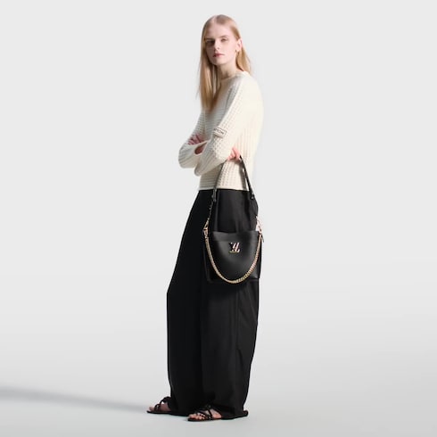 El exquisito bolso bombonera Lock and Walk, confeccionado en piel de becerro granulada, combina un sobrio diseño informal con elegantes detalles de estilo parisino. Este accesorio, ligero y cómodo, presenta un amplio compartimento delantero con un cierre de giro LV para acceder fácilmente a los objetos imprescindibles. Incluye una refinada bandolera y un asa de cadena dorada, ambas extraíbles, que permiten llevarlo de diferentes maneras.