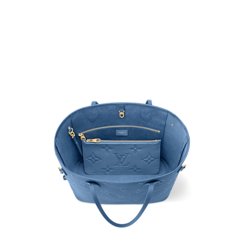 El atemporal bolso tote Neverfull MM se presenta en una refinada tonalidad azul Denim para la Colección Monogram Empreinte. Esta moderna edición en piel se decora con el emblemático motivo de la Maison y elegantes piezas metálicas de color dorado. La pieza, que cuenta con espacio suficiente para los objetos imprescindibles de diario y un ordenador portátil, incluye cordones laterales ajustables.