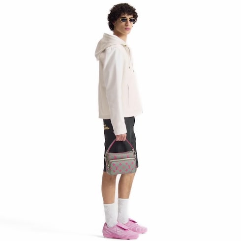 El icónico bolso Nil, un modelo de los años 80 recuperado por Pharrell Williams, se actualiza en lona Monogram Glow. La pieza luce un colorido estampado, inspirado en las luces de neón de Miami. Este diseño vintage incluye un compartimento principal y un bolsillo con cremallera en la parte delantera, así como un asa superior y una bandolera en piel, ambas extraíbles, para llevarlo de múltiples formas.