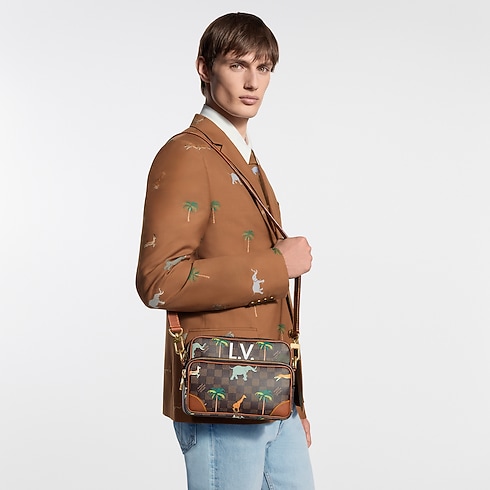 Este bolso Nil MM, ideal para lucir un look retro, forma parte de la Colección The Darjeeling Limited. Está elaborado en lona Damier Heritage revestida, que se realza con un motivo de animales salvajes corriendo entre palmeras. La pieza presenta un espacioso bolsillo delantero con cremallera, un asa superior y una bandolera ajustable, ambas extraíbles, que aportan gran versatilidad.
