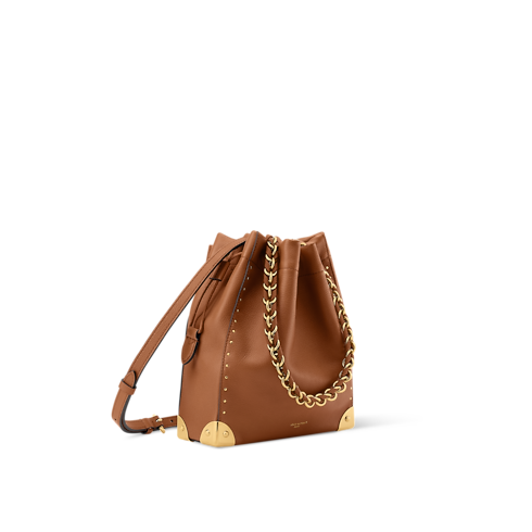 Este moderno y atemporal bolso Noé Trunk destaca por su elegante diseño tipo bombonera. Confeccionado en piel de becerro lisa, se adorna con refinadas piezas metálicas de color dorado, como una cadena trenzada extraíble y las esquinas inspiradas en los emblemáticos baúles de Louis Vuitton. Incluye un cierre de cordón para guardar los objetos de valor de forma segura.