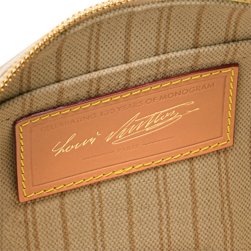 Esta edición de aniversario del bolso Speedy 20 con bandolera, elaborado en la lona Monogram Origine de la Maison, se ha creado para rendir homenaje al 130º aniversario del emblemático motivo de Louis Vuitton. El modelo, ribeteado en piel, se distingue por una exclusiva etiqueta conmemorativa y un candado en tono dorado. Este diseño, que puede lucirse de múltiples formas, revela un forro de rayas con un bolsillo plano para asegurar los objetos más pequeños.