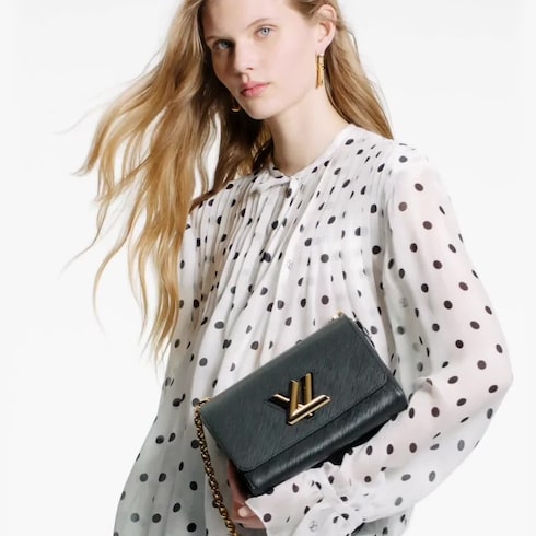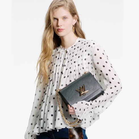 Este bolso Twist MM, confeccionado en emblemática piel Epi de la Maison, es un Nuevo Clásico de Louis Vuitton presentado en el desfile de la Colección Crucero 2015. Ideal tanto para el día como para la noche, el diseño incorpora un distintivo cierre LV Twist escultural en un brillante metal de color dorado, así como un interior sorprendentemente espacioso gracias a su ingeniosa base ondulada. Este exquisito accesorio se completa con una bandolera de cadena deslizante que permite llevarlo al hombro o cruzado.