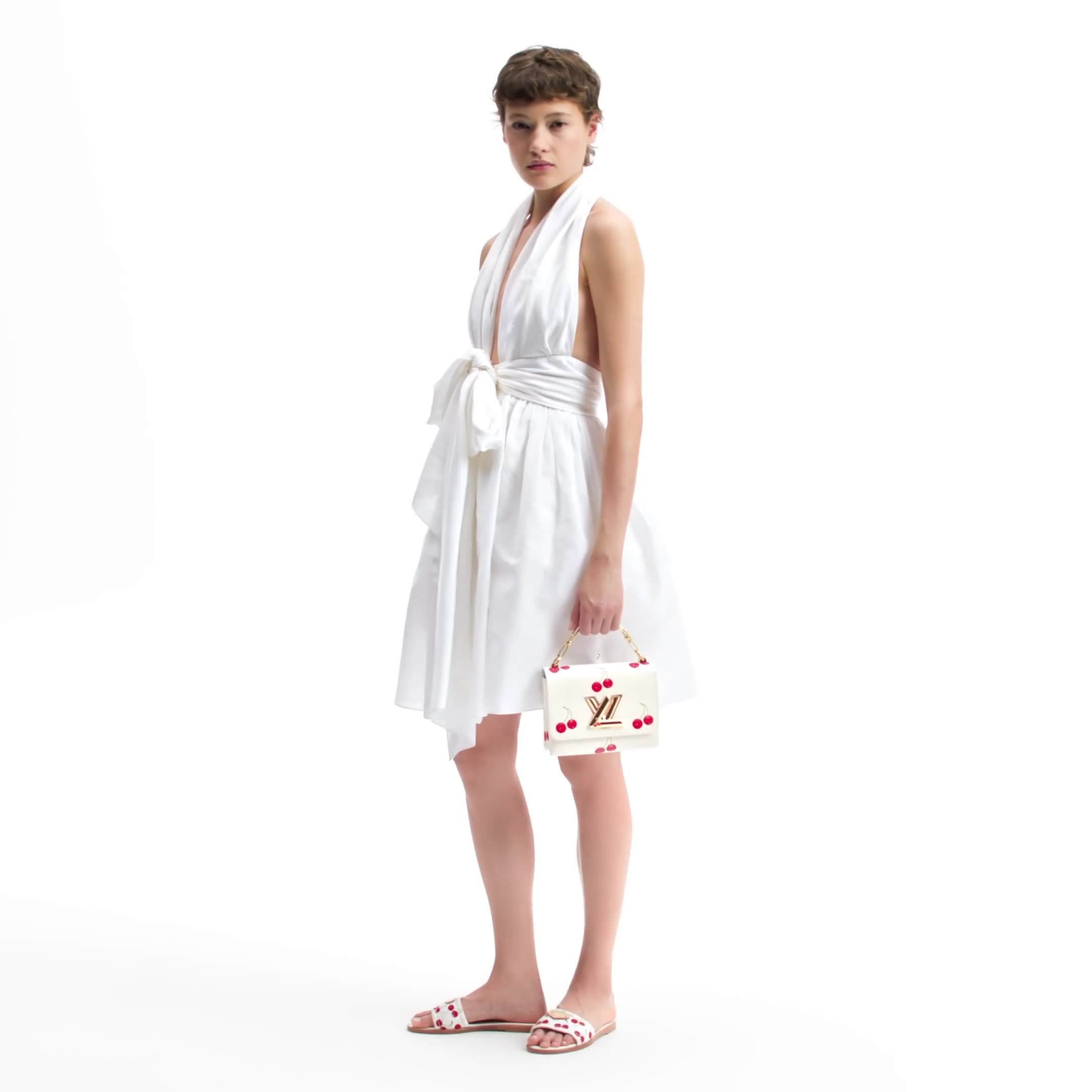 El elegante bolso Twist PM, perfecto para la temporada estival, destaca por los detalles originales de la reedición de la Colección Louis Vuitton x Murakami. Su diseño, confeccionado en la piel Epi granulada y texturizada de la Maison, incorpora un llamativo motivo de cerezas con la estética alegre del afamado artista japonés. Se completa con brillantes piezas metálicas de color dorado, como el icónico cierre de giro LV Twist.