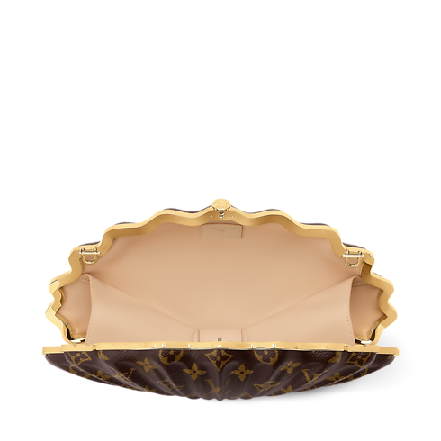 El bolso Whisper es una pieza exclusiva y original, que destaca por su diseño en forma de concha. Confeccionado en emblemática lona Monogram, presenta un interior forrado en piel de becerro lisa, para guardar los objetos de valor de forma segura. Este elegante modelo se adorna con una cadena de color dorado y un cierre de botón.