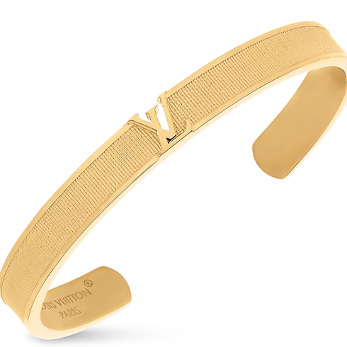 El brazalete LV Initiales, confeccionado en brillante metal de color dorado, realza cualquier look con un toque de elegancia distintiva y atemporal. Presenta una banda gruesa, adornada con las famosas iniciales de la Maison con un original efecto calado. Este vistoso accesorio es ideal para todas las ocasiones.