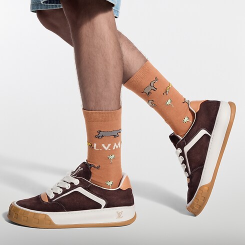 Los calcetines LV x The Darjeeling Limited celebran el espíritu de la temporada Primavera-Verano 2026, que rinde homenaje a la vivacidad de la vestimenta y los colores de la India. El motivo de animales aparece originalmente en el equipaje Louis Vuitton diseñado exclusivamente para la película de 2007. Esta obra cinematográfica plasma el dandismo característico del país y de esta colección.