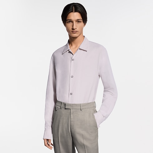 Esta camisa de manga larga y cuello abierto, confeccionada en algodón orgánico y suave, es ideal para los días más cálidos del verano. Su tejido ligero se realza con un motivo Micro Flower Damier sutilmente brillante realizado en Jacquard y botones con efecto nacarado. Esta versátil prenda puede combinarse con el traje de corte Napolitana para lograr un look elegante.