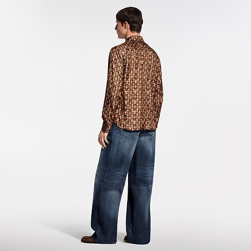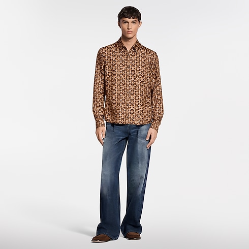 Esta camisa fluida, confeccionada en pura seda orgánica, luce el clásico tono marrón intenso de Louis Vuitton. Presenta el motivo gráfico integral Monogram Overlap del desfile Primavera-Verano 2026, así como unos brillantes botones con efecto cuarzo ojo de tigre. Esta lujosa prenda brinda un toque elegante a cualquier look.