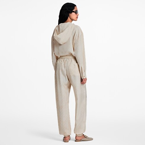 Esta exquisita camisa de depurado corte cuadrado destaca por la informal capucha con cordón ajustable. Confeccionada en seda fluida, luce el alegre motivo Monogram Cloud en delicados tonos de temporada, así como elegantes piezas metálicas de color dorado, como una flor Monogram en uno de los dos bolsillos con solapa.